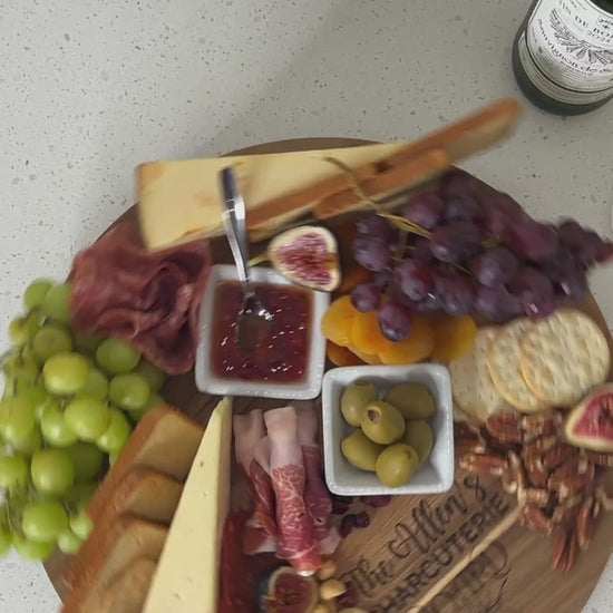🍇 Serve in style with this large swivel charcuterie board. With a spacious surface and smooth rotating base, this board is perfect for creating beautiful charcuterie displays, organizing multiple small dishes, or using as a statement centerpiece at your next gathering.